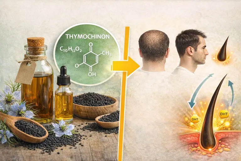 Olej z czarnuszki na łysienie androgenowe – czy tymochinon naprawdę działa?
